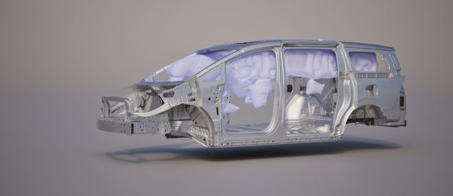 安全是家庭出行的核心诉求,至境世家以远超行业标准的要求构建安全防护体系。车身采用12横4纵笼式结构,高强度钢和铝合金总占比达77.3%,为乘员舱与电池包提供坚实保护。